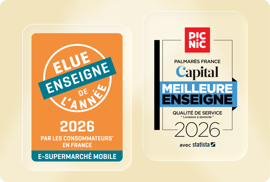 Grâce à vous, Picnic est élu Enseigne de l’Année et Meilleure enseigne de livraison à domicile en 2026. Merci pour vos votes, et à bientôt devant votre porte !