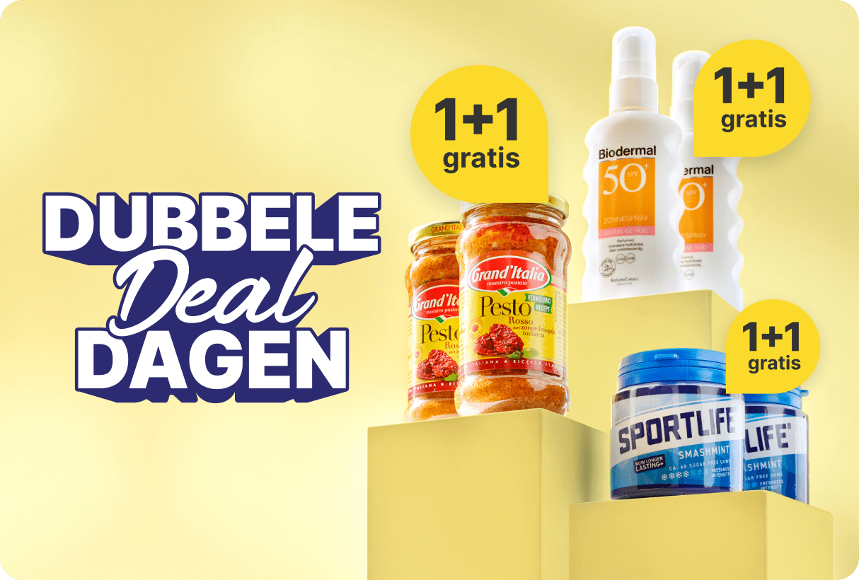 Tijdens de Dubbele Dealdagen kun je rekenen op scherpe korting op de beste merken. Met 1+1 en 2+2 gratis op ongelooflijk veel producten, ben je onderaan de streep zomaar 60% goedkoper uit!