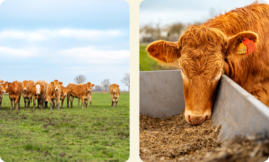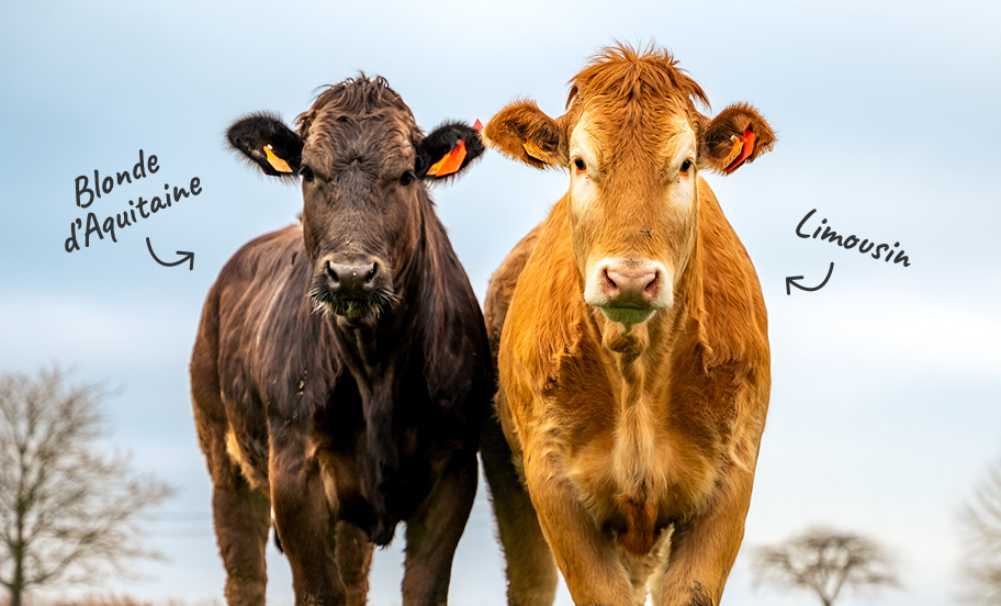 Meatier werkt voornamelijk met Limousin en Blonde d’Aquitaine. Robuuste rassen die bekendstaan om hun natuurlijke groei en rijke vleesstructuur. Het resultaat is sappig vlees met karakter.