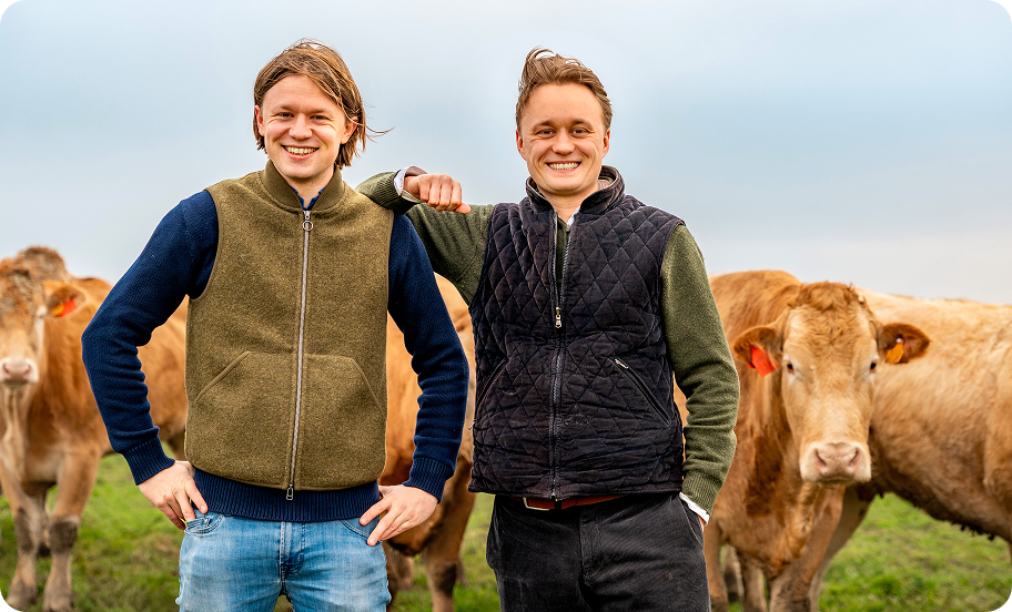 Broers Gauthier en Axel groeiden op op de boerderij. Kalfjes verzorgen, stro verversen, ’s nachts opstaan als het nodig was. Het hoorde er allemaal bij. Hun vader leerde hen waar je écht op moet letten: rust in de kudde, voldoende water, goed voer en altijd oog voor detail.