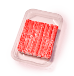 "Open" sushi met surimi, avocado en een knapperig jasje van zwart en wit sesamzaad.